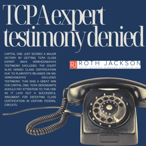 Capital One just scored a major victory by getting TCPA class expert Anya Verkhovskaya’s testimony excluded. The court also denied class certification due to plaintiff’s reliance on Ms. Verkovskaya’s excluded testimony. This was a great win for Capital One. TCPA defendants should pay attention to this one as it lays out a successful argument for defeating class certification in certain federal circuits.